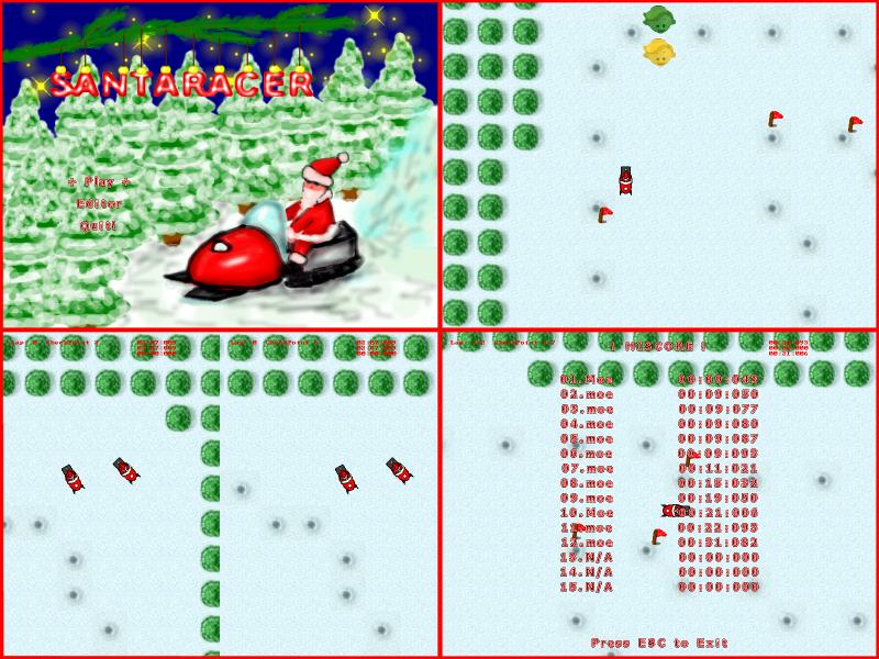 I wrote this game for a christmas hack. You race around a snowy racetrack with santas on snowmobiles. The game features a built in level editor and highscores for each track.